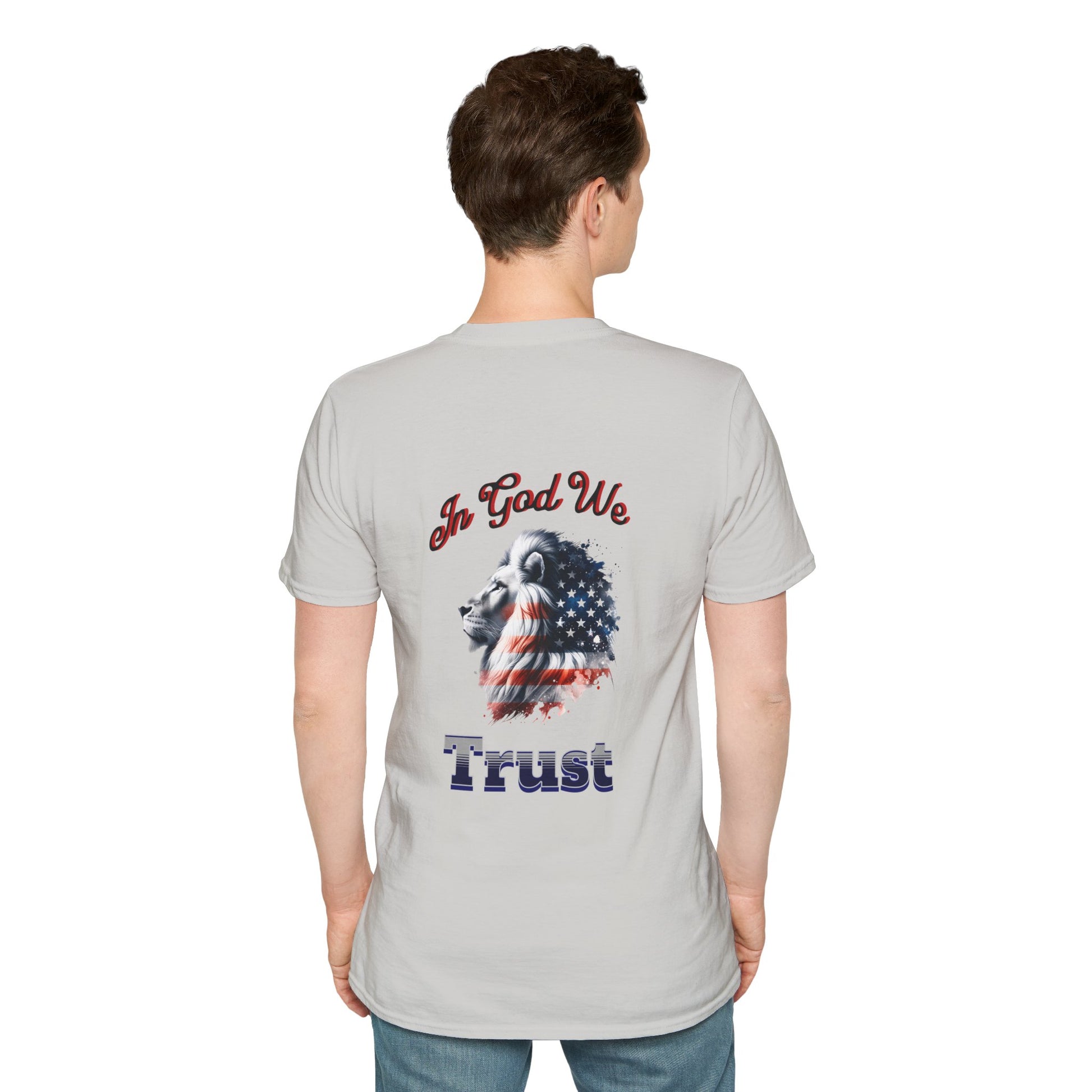 Stand tall, stay bold, and let your faith shine! Our 'In God We Trust' T-shirt with a striking USA flag design is more than just apparel—it’s a declaration. Perfect for patriots who know their foundation is built on faith and freedom, this tee blends timeless values with a powerful style. Whether you're at a cookout, a parade, or just out and about, wear it loud and proud: Faith. Freedom. Forever." - This design is on the back.