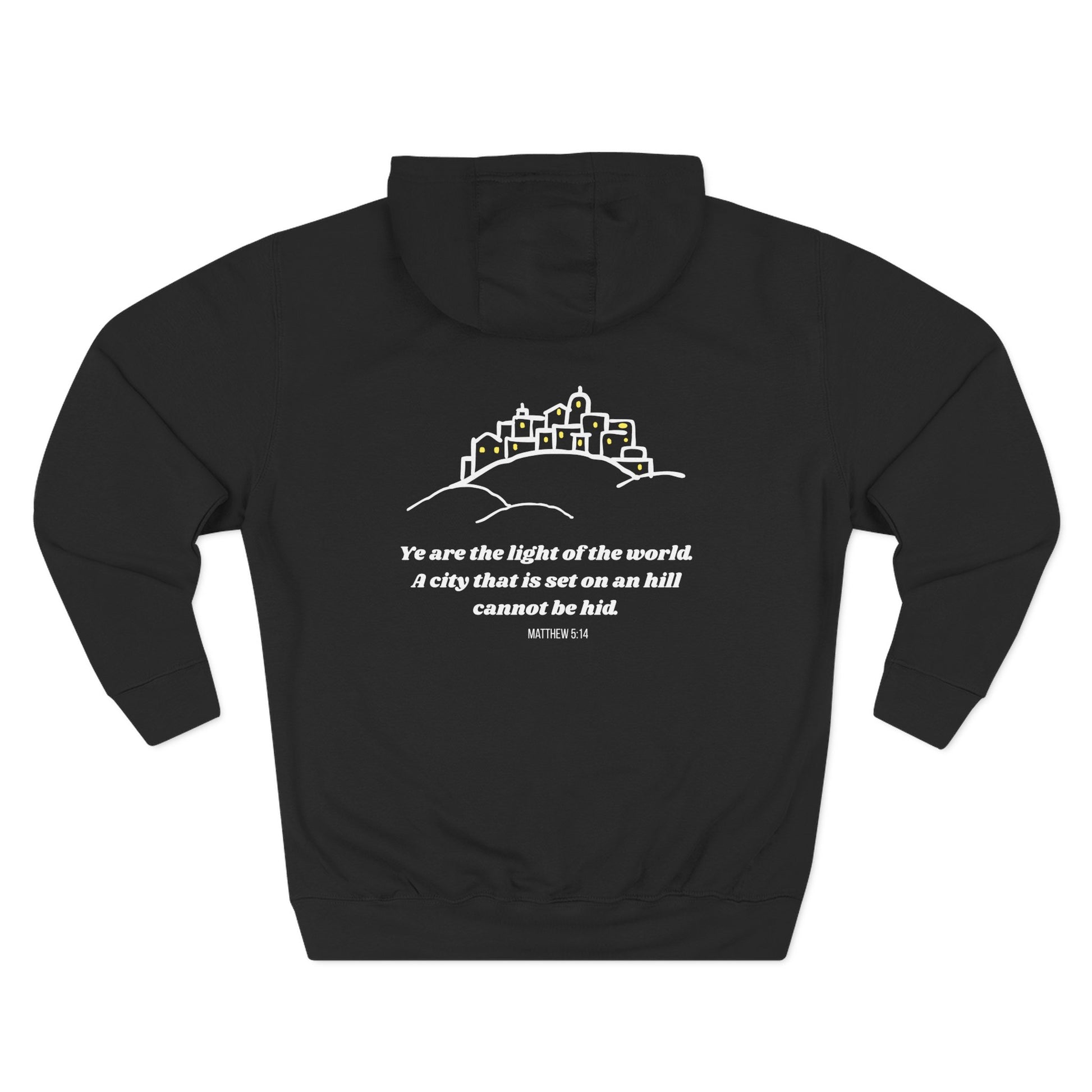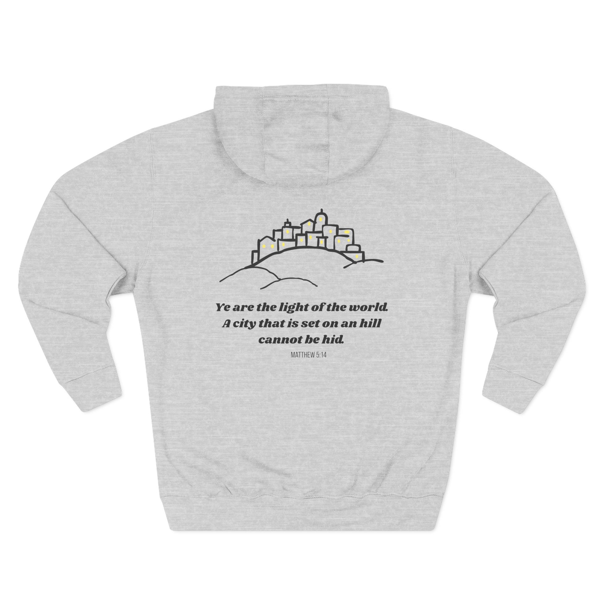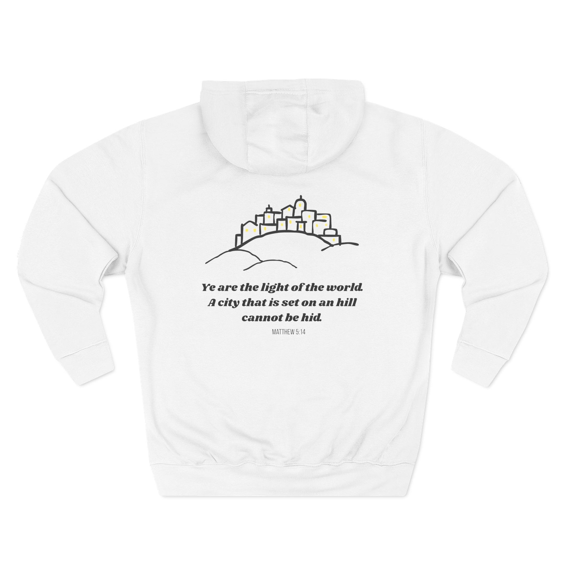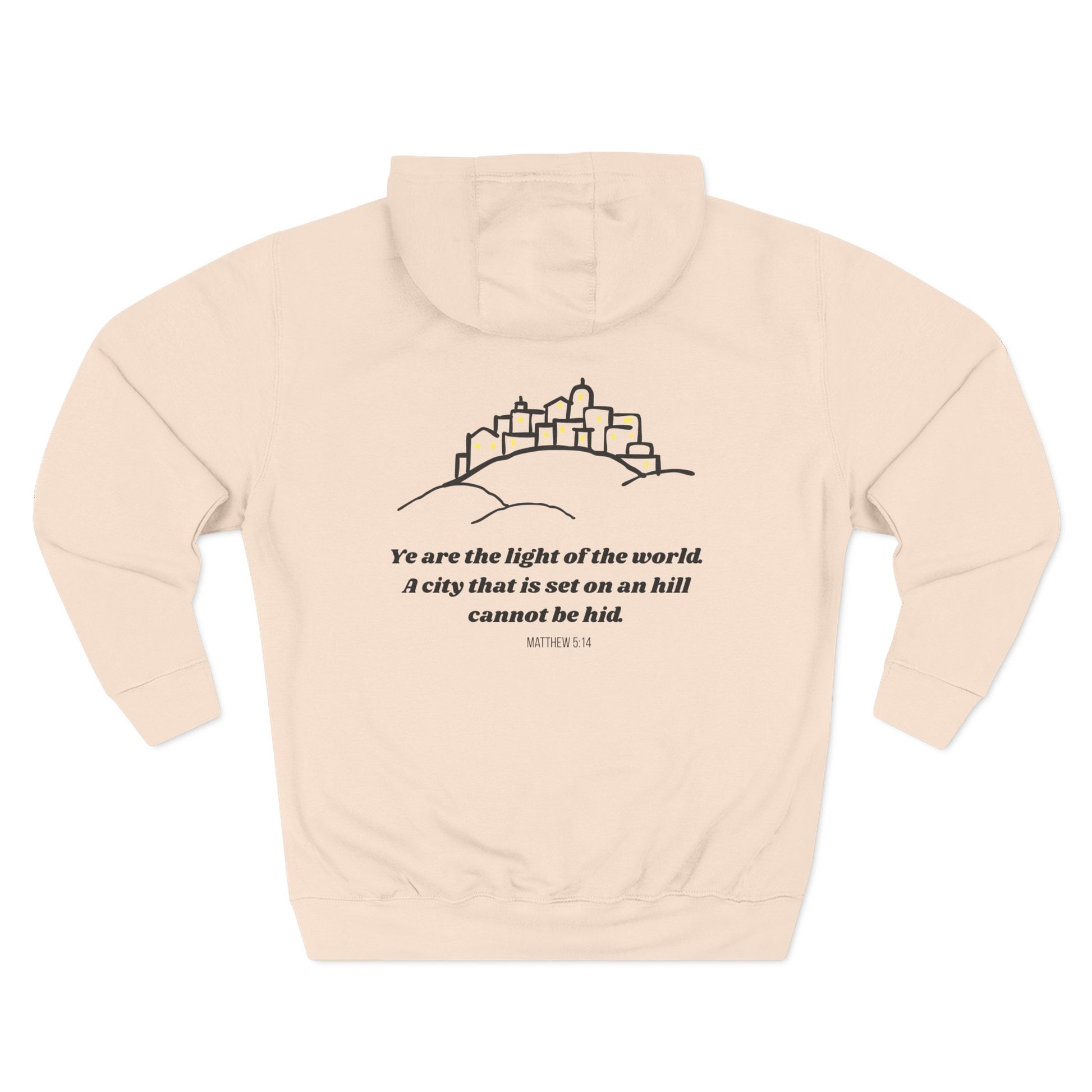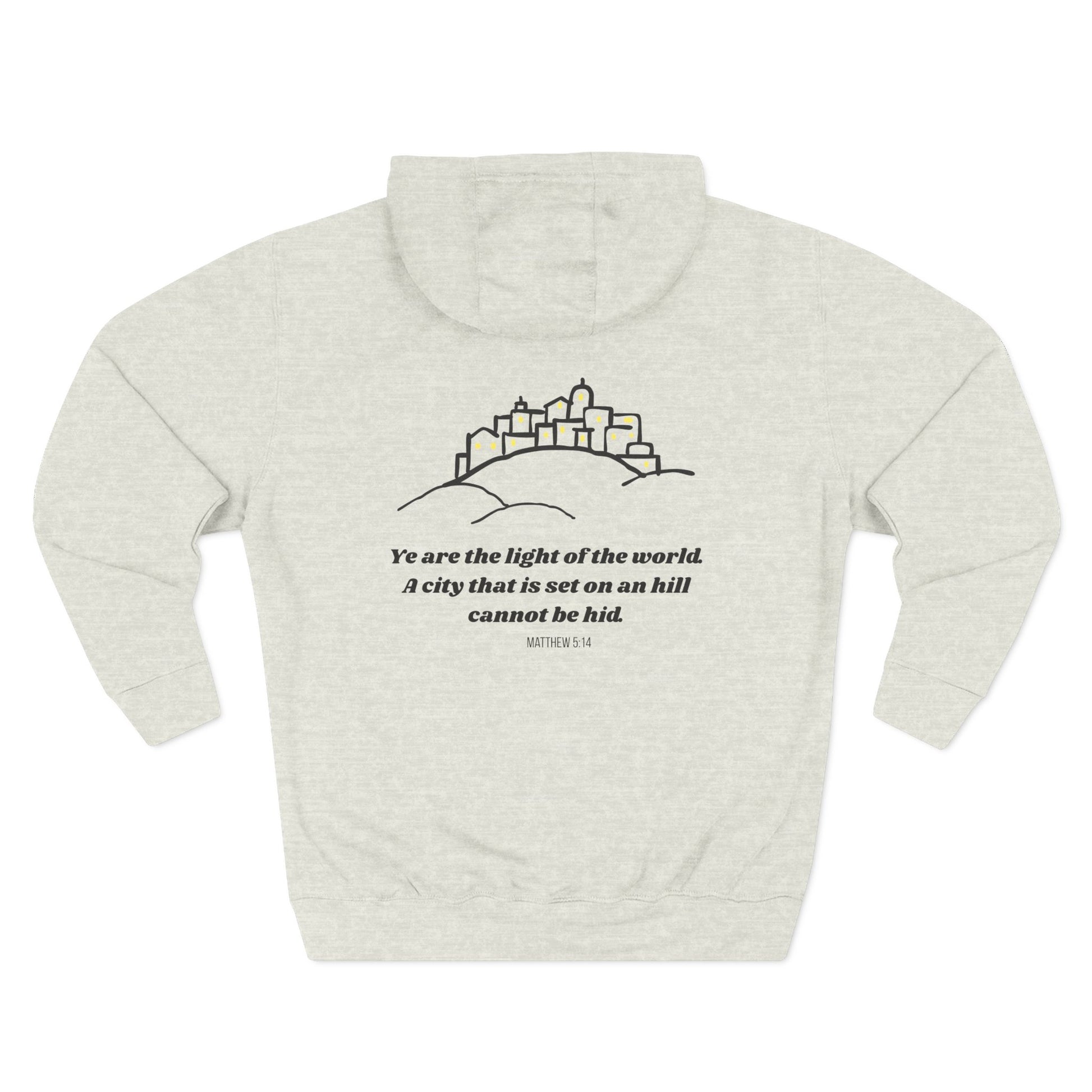 Some call it a glow-up. I call it Matthew 5:14. (Also, it's really soft.) Beat the cold with this premium pullover hoodie that’s just the right layer of warm and cozy. Made with three-panel fleece lining, this pullover is double stitched for durability and roomy. Pick one in your favorite color to match your style.